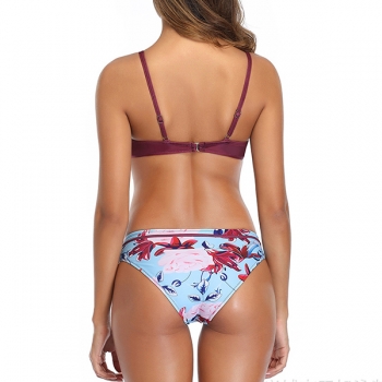 Sexy Braided Halter Bikini Top + Low-waist Printed Bikini Bottom Two-piece Set