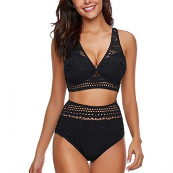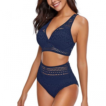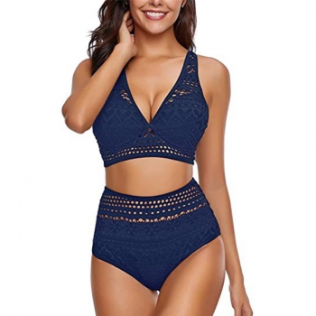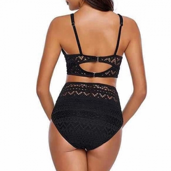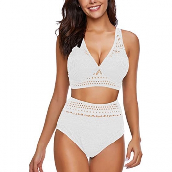 Sexy Lace Spliced Floral Cutout Bikini Set Consist of Bikini Top +High Waist Bikini Bottoms