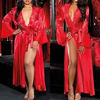 Sexig långärmad maxiklänning med spetspanel och självknytning
