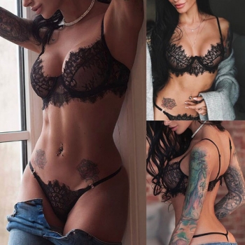 Sexig låg midja enfärgad spets-BH + T-rygg i två delar
