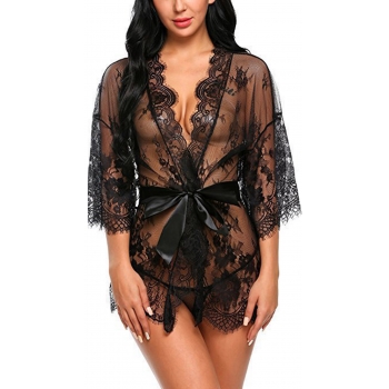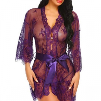 Sexig nattklänning i halvgenomskinlig spets