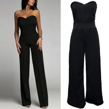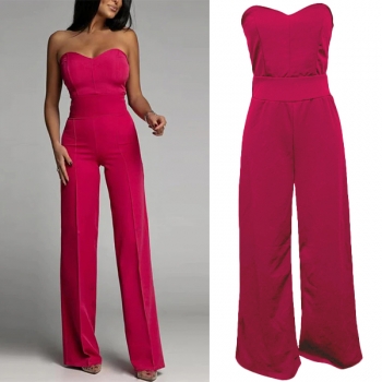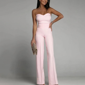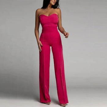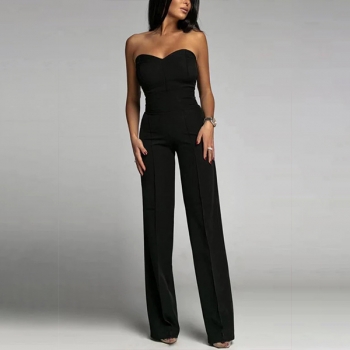 Sexig axelbandslös jumpsuit med rak skärning och enfärgat mönster
