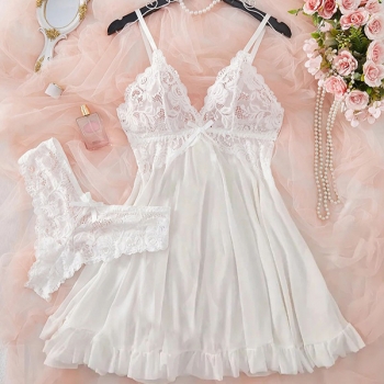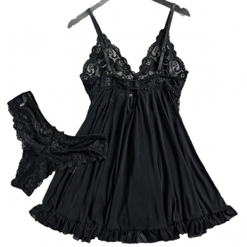 Nattklänning – sexig tvådelad modell med djup V-ringning, spets och volangkant