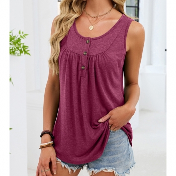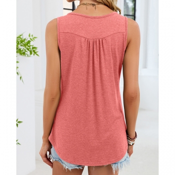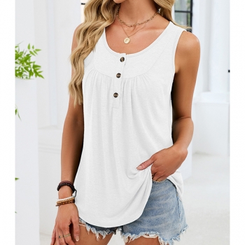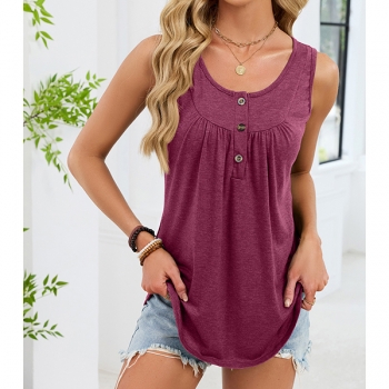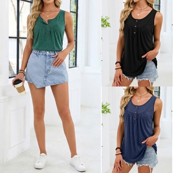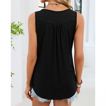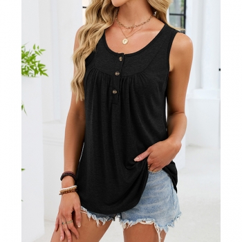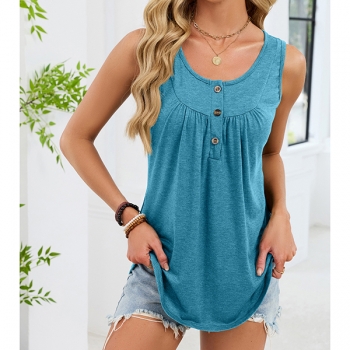 Enkel enfärgad ärmlös topp med U-ringning och snörning fram
