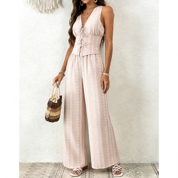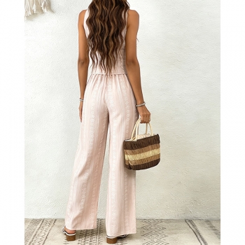 Tvådelat sommarset – ärmlöst linne med midjeknytning och vida byxor, enfärgat och mångsidigt