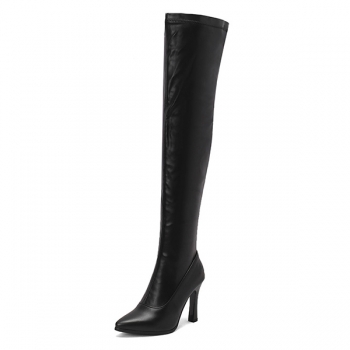 Stövlar med stilettklack över knäet och sidodragkedja