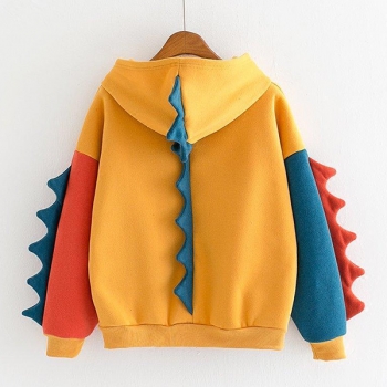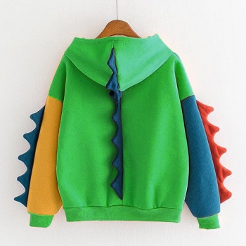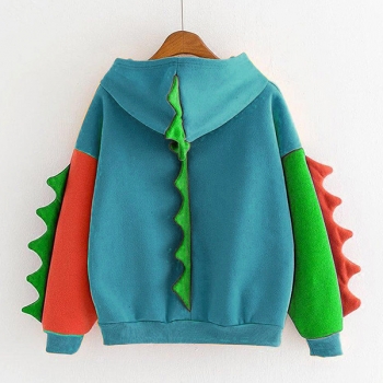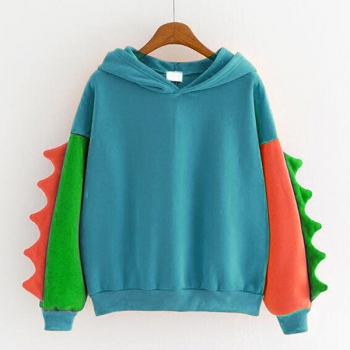 Street Fashion Kontrastfärgad Dinosaur Huvtröja