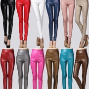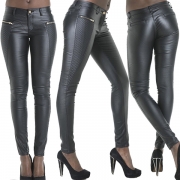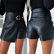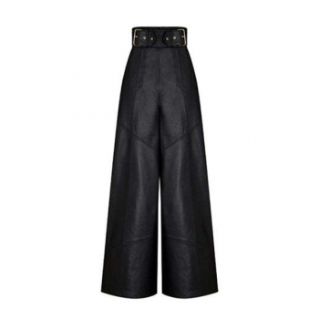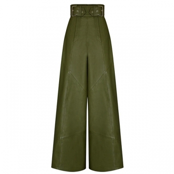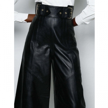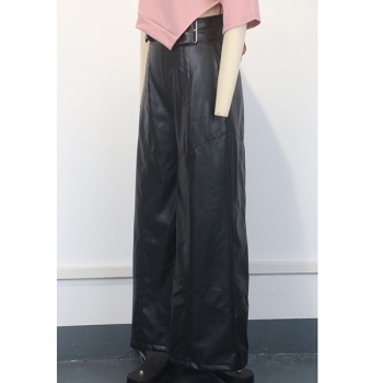 Högmidjade vida byxor i konstläder med streetstyle-känsla
