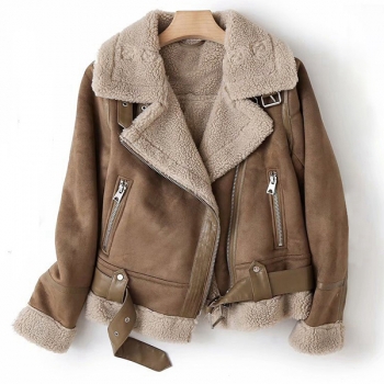 Street Style Krage Långärmad Sneddragkedja Plyschfodrad Varm Mockajacka