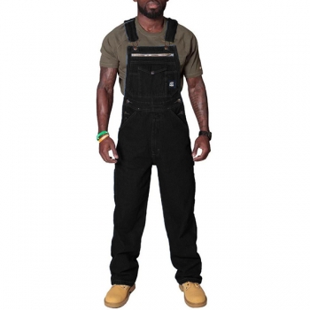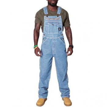 Street Fashion Old Wash Dragkedja Hängselbyxor – Denim Jumpsuit för män
