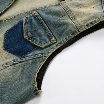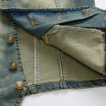 Street Fashion, Gammaltvättad, V-ringad Jeansväst För Män Med Ärmlös Design Och Knappar