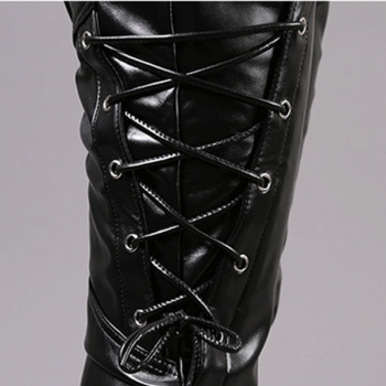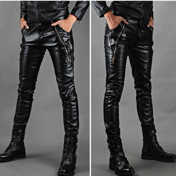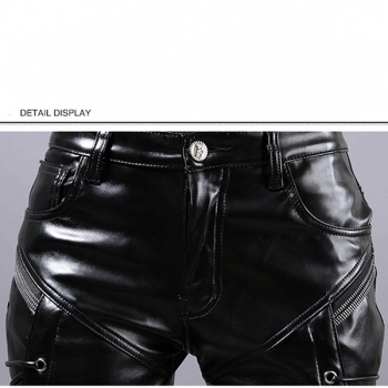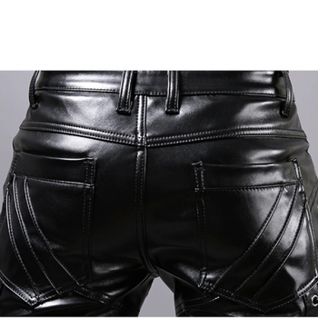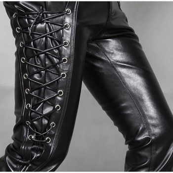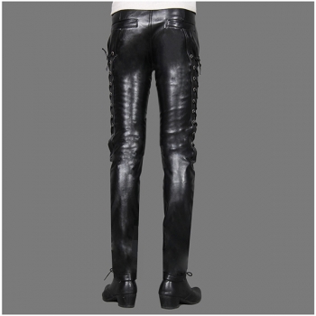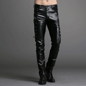 Herrbyxor i PU-läder med sidosnörning – gatumode, slim fit