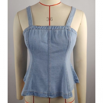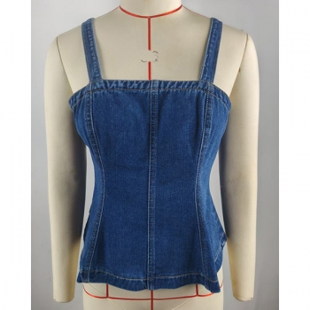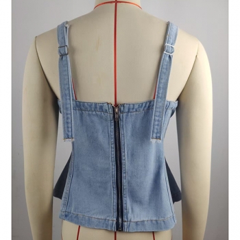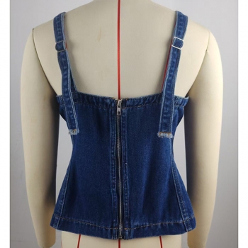 Gatumode denimtop med fyrkantig hals och dragkedja i ryggen