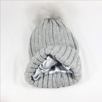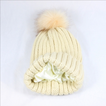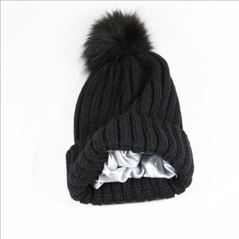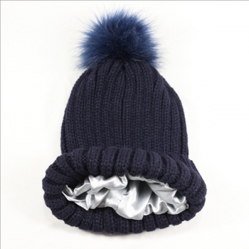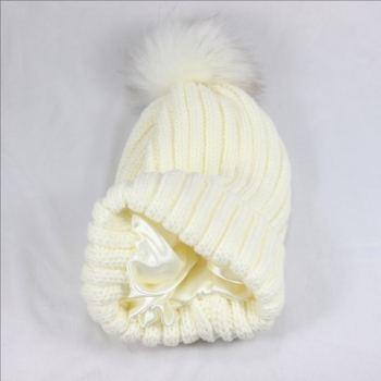 Värmande vintermössa med satinfodrad insida och pompom – utomhusmössa som motverkar statisk elektricitet och trassligt hår