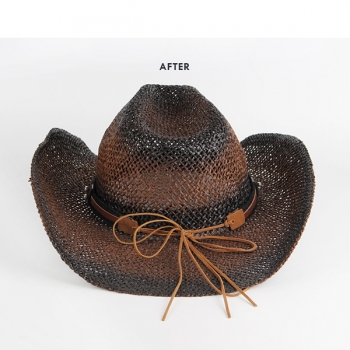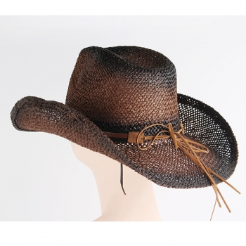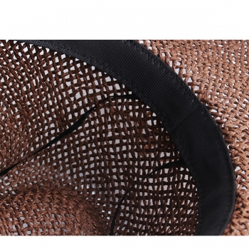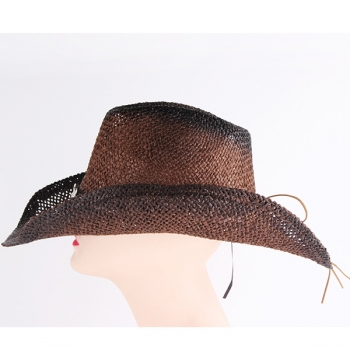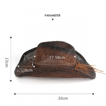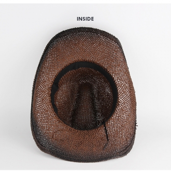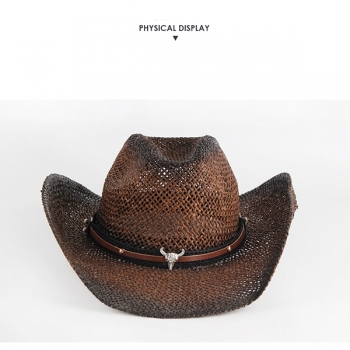 Vintage flätad halmcowboyhatt med tjurhuvudband – luftig western solhatt