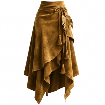 Vintage mockakjol med hög midja, asymmetrisk fåll och tofsbälte