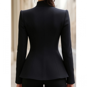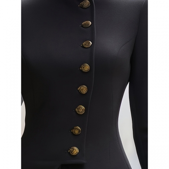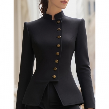 Vintagejacka med ståkrage, långärmad med ojämn framknäppning
