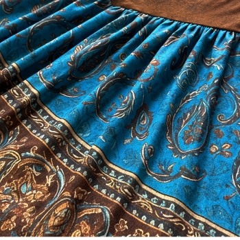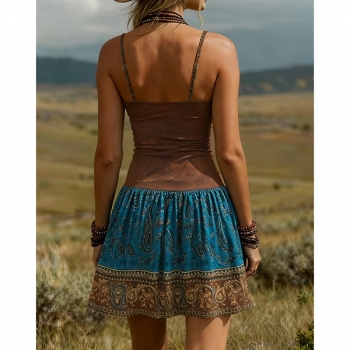 Boho Western-miniklänning – V-ringad klänning i linne med blommönster och låg midja
