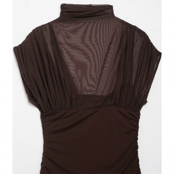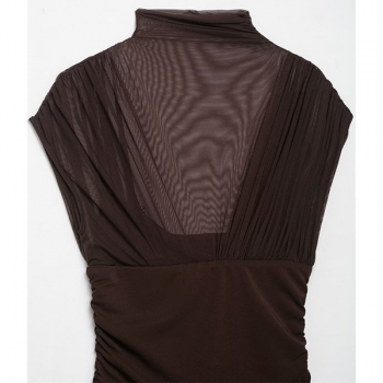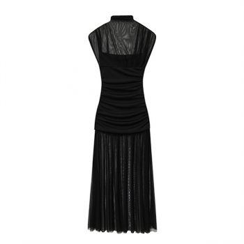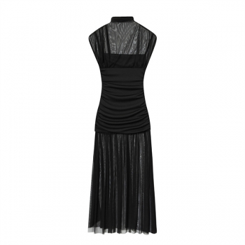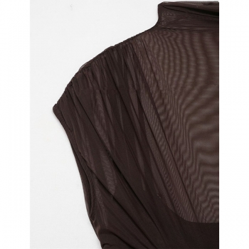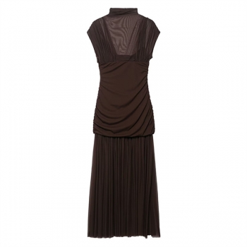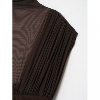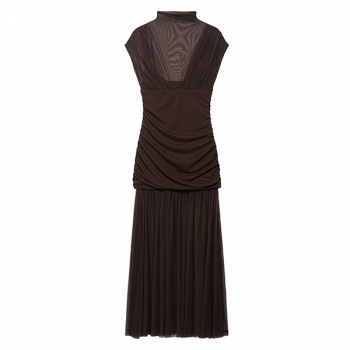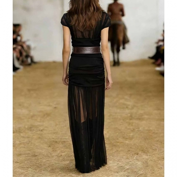 Western Boho-maxiklänning - transparent mesh med rynkad överdel, sänkt midja och vågig fåll