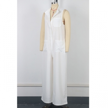 Jumpsuit dam, vit med lös passform – ärmlös modell med vida ben och påsydda fickor