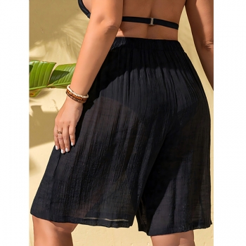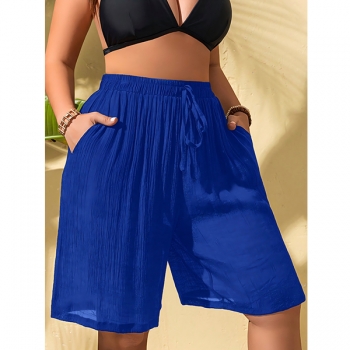 Damstrandshorts med halvt transparent dragsko och elastisk midja, sommarens badshorts
