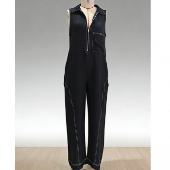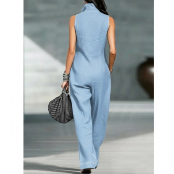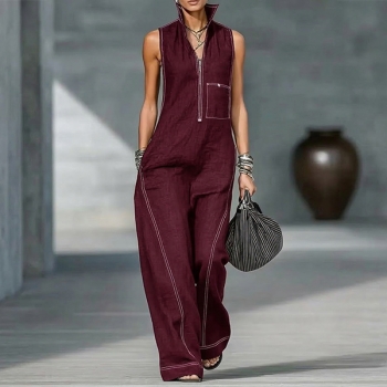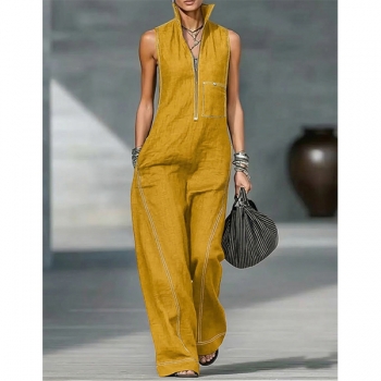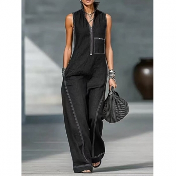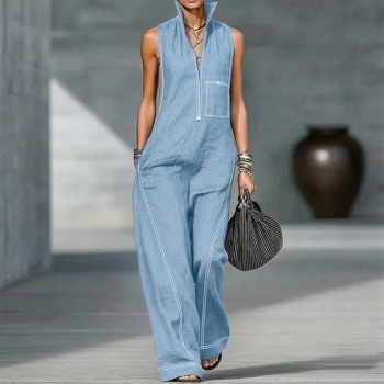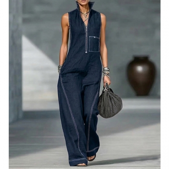 Ärmlös damklänning med vid kjol, halv dragkedja och fickor