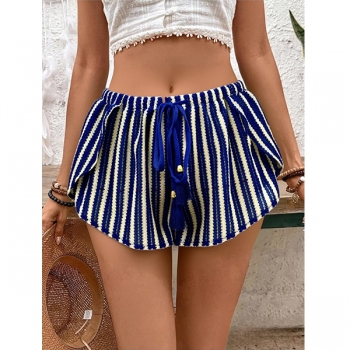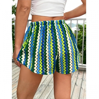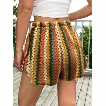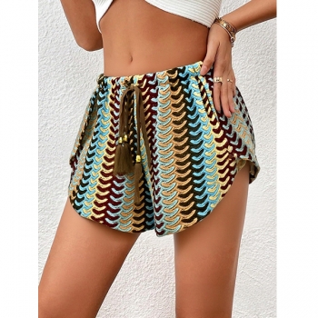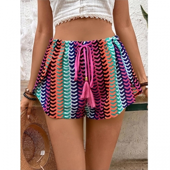 Dam virkade strandshorts med färgglad chevronmönstrad utskärning och tofsdetalj, sommarbadkläder