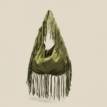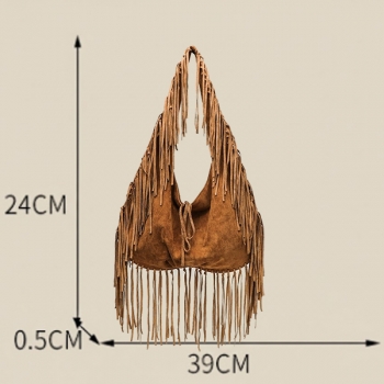 Hobo-väska i fuskmocka med tofs, rymlig toteväska med stor kapacitet – vintage axelväska för kvinnor