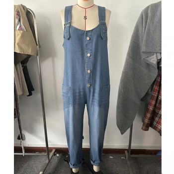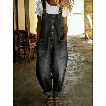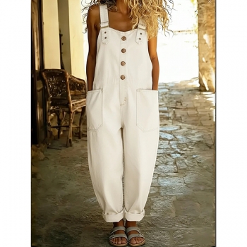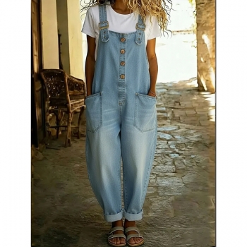 Lösa och avslappnade hängselbyxor för dam med fickor
