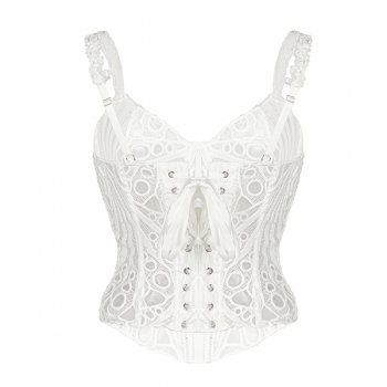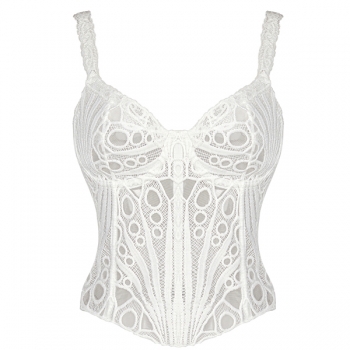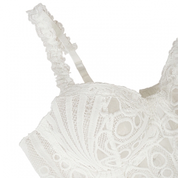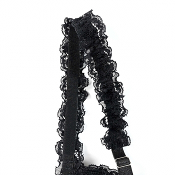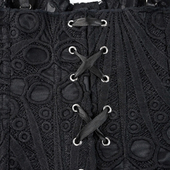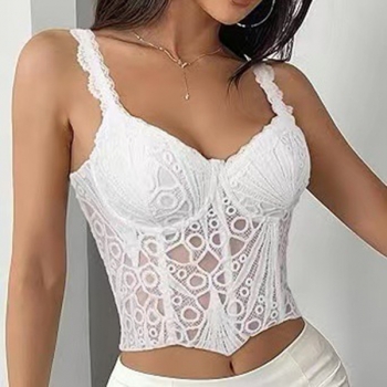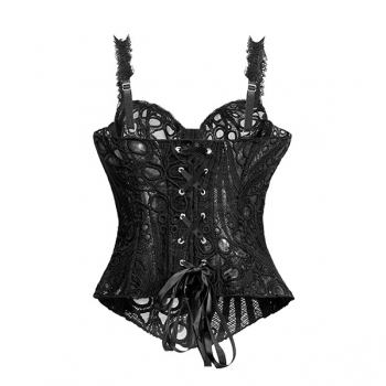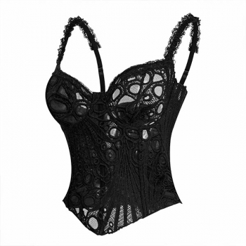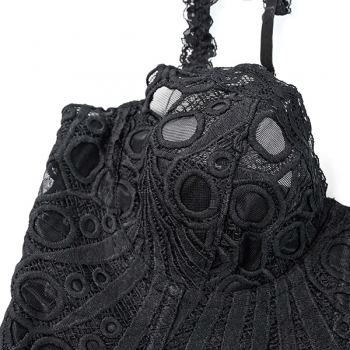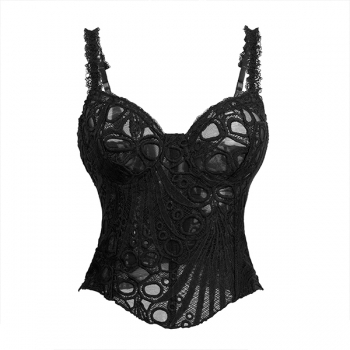Sexig svart spetskorsett för dam – Transparent blommig bustier med volangdetaljer