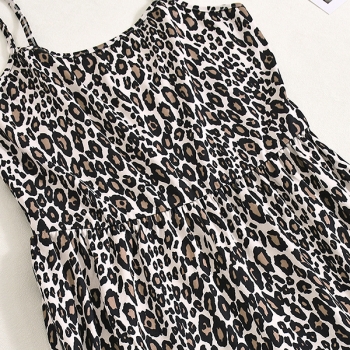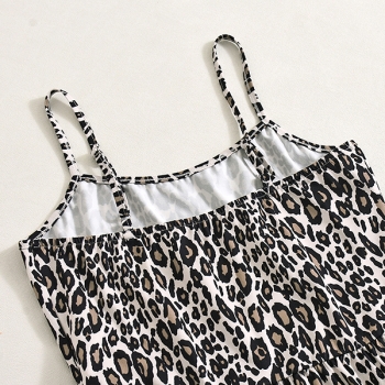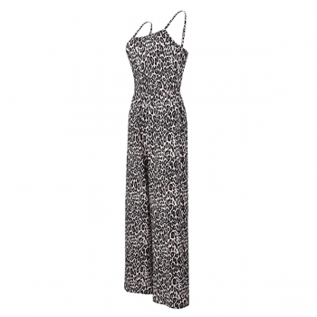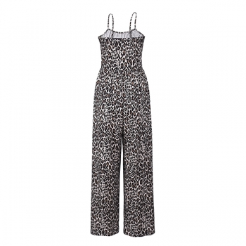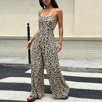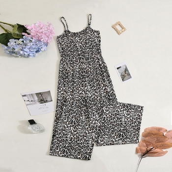 Leopardmönstrad jumpsuit dam – sexig sommaroutfit med tunna spaghettiband, vida ben och fyrkantig halsringning