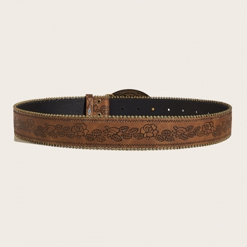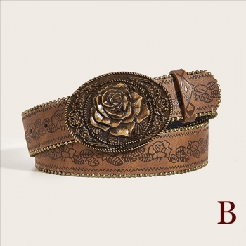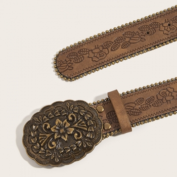 Dambälte westerninspirerat blommönster, Y2K Boho midjebälte med stort metallspänne för jeans/kjol/klänning